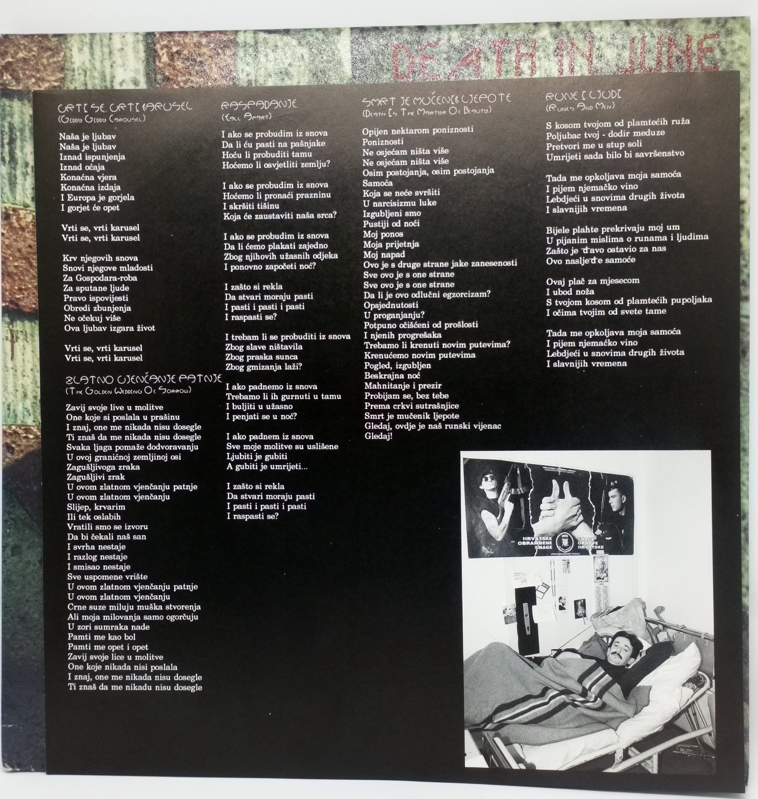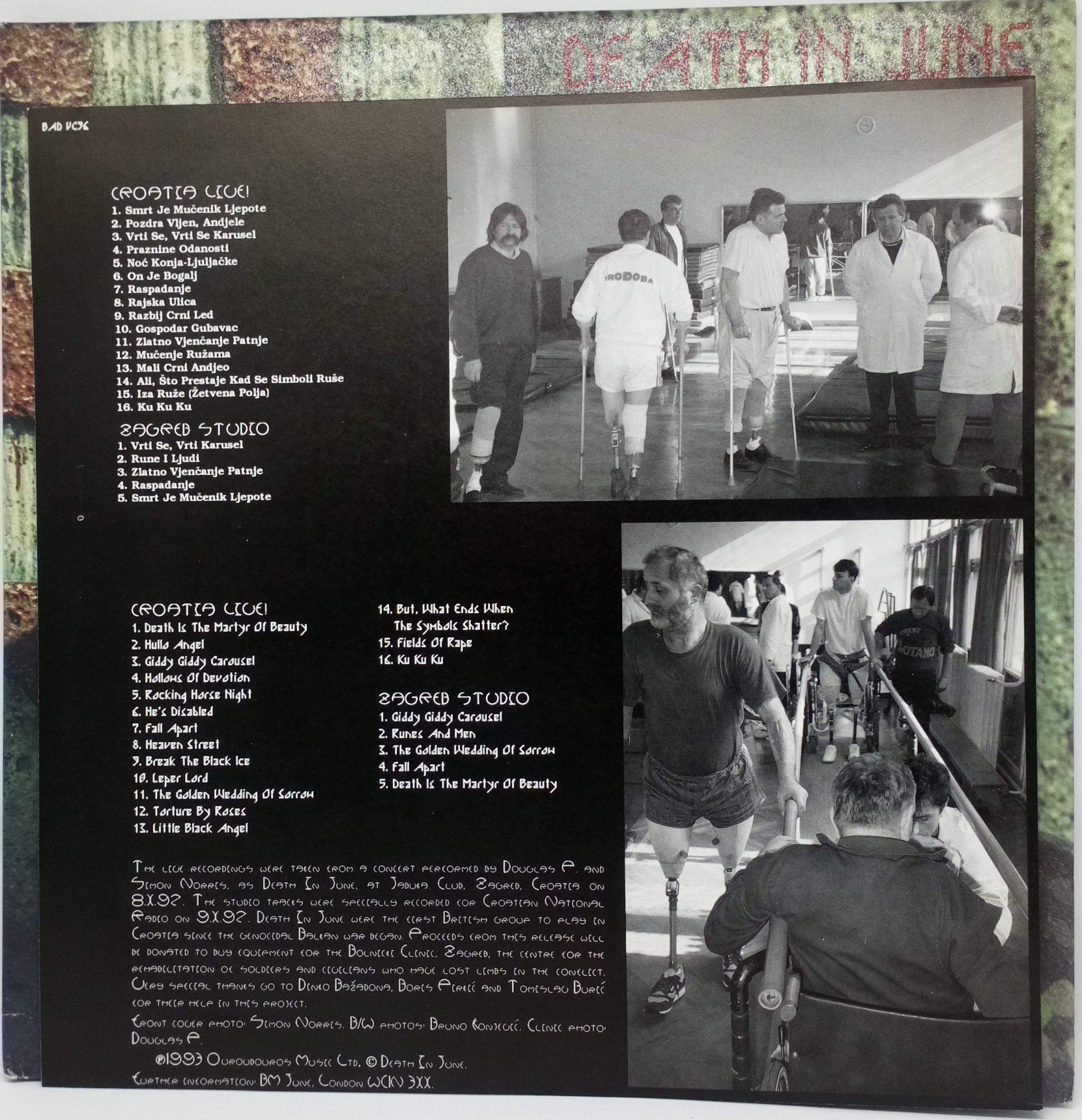 The live recordings were taken from a concert performed at Jabuka Club, Zagreb, Croatia on 8.X.92. The studio tracks were specially recorded for Croatian National Radio on 9.X.92. Death In June were the first British group to play in Croatia since the genocidal Balkan war began. Proceeds from this release will be donated to buy equipment for the Bolnicki Clinic, Zagreb, the centre for the rehabilitation of soldiers and civilians who have lost limbs in the conflict.