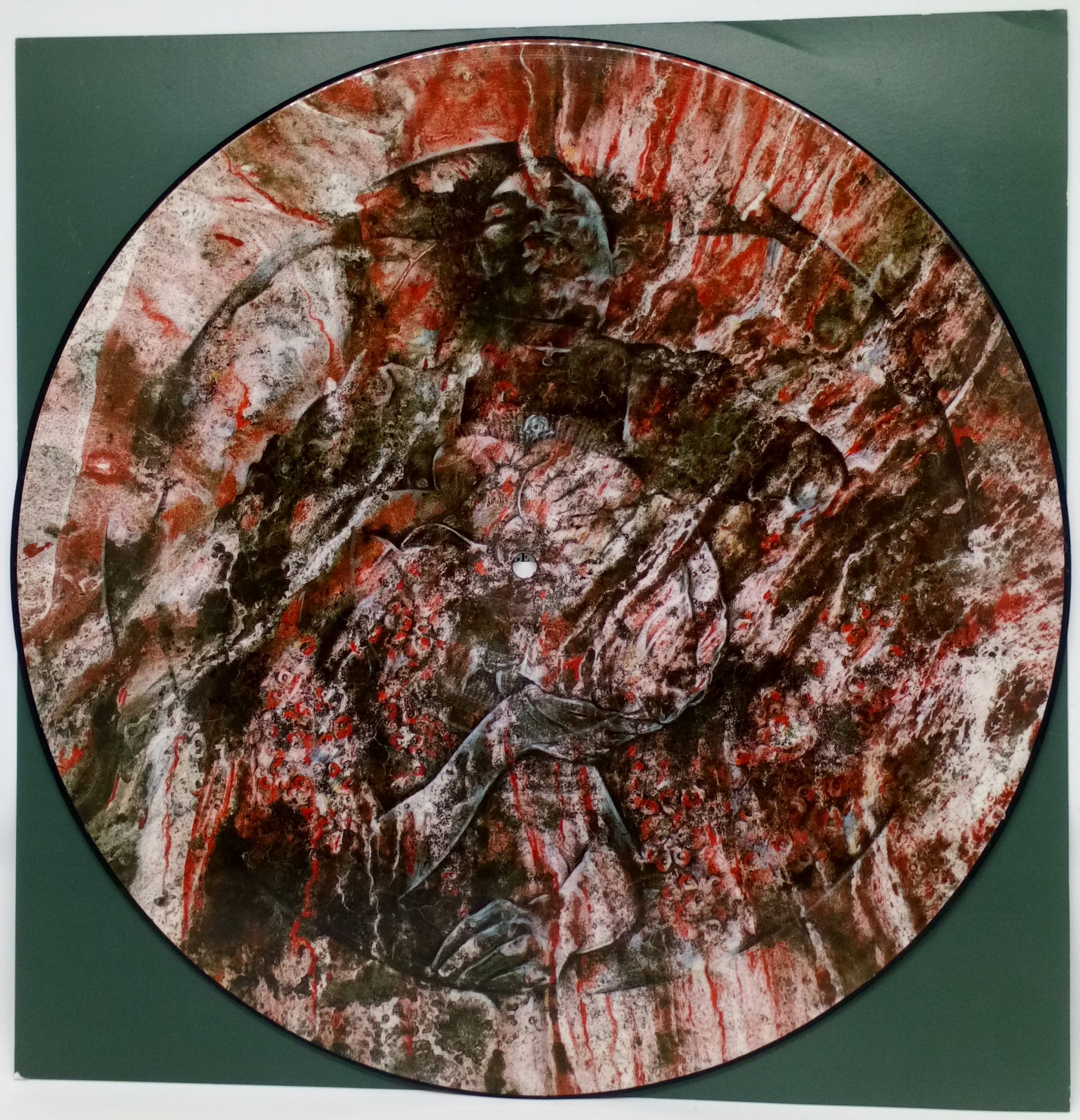 Enrico Chiarparin Art Reissue (2000): Packaged in heavyweight plastic sleeve with 12″x12″ info sheet, this picture disc reissue features artwork on both sides by Enrico Chiarparin. Limited to 2000 copies.