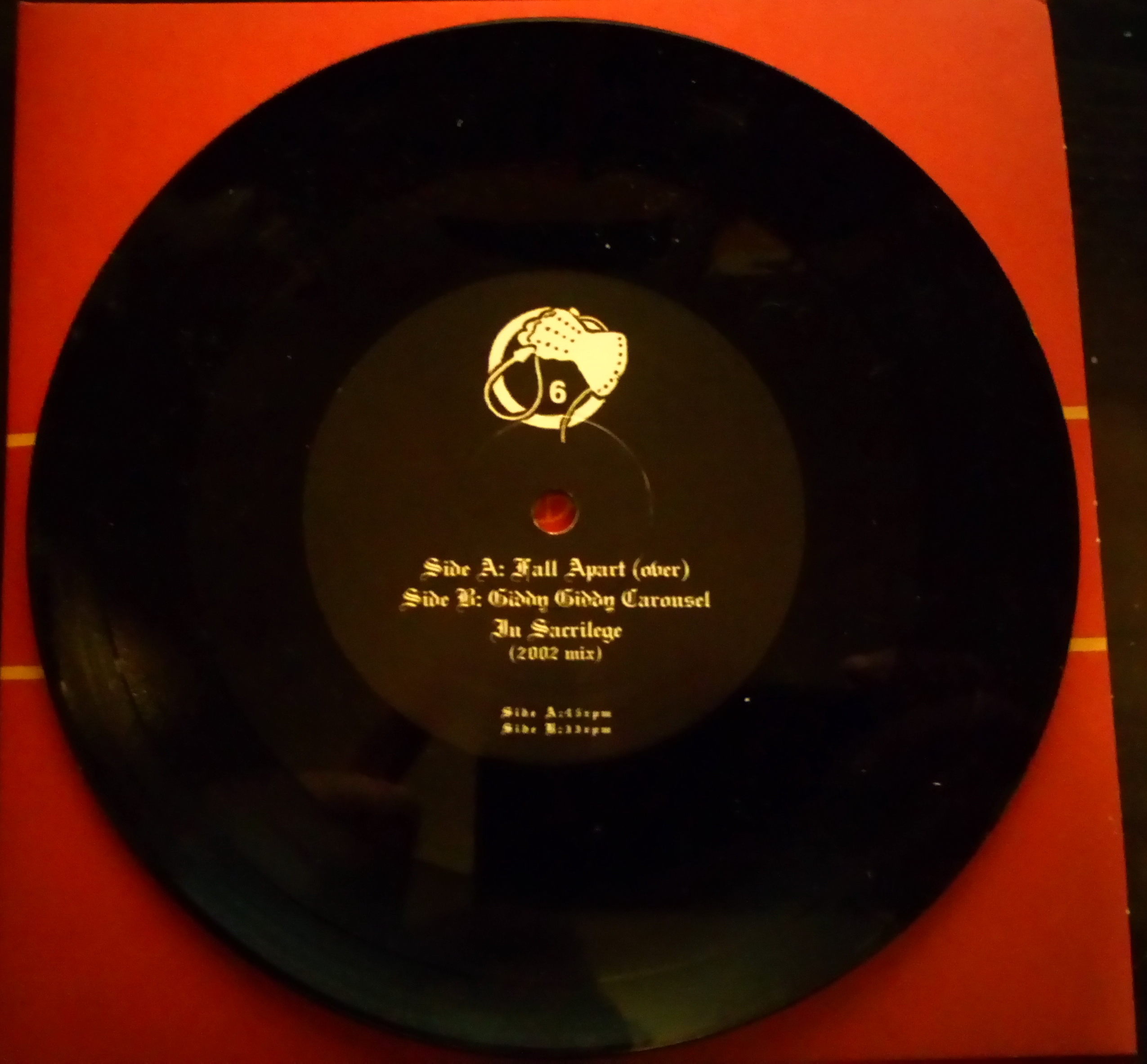 Side A of the 7″ plays at 45RPM while side B plays at 33RPM